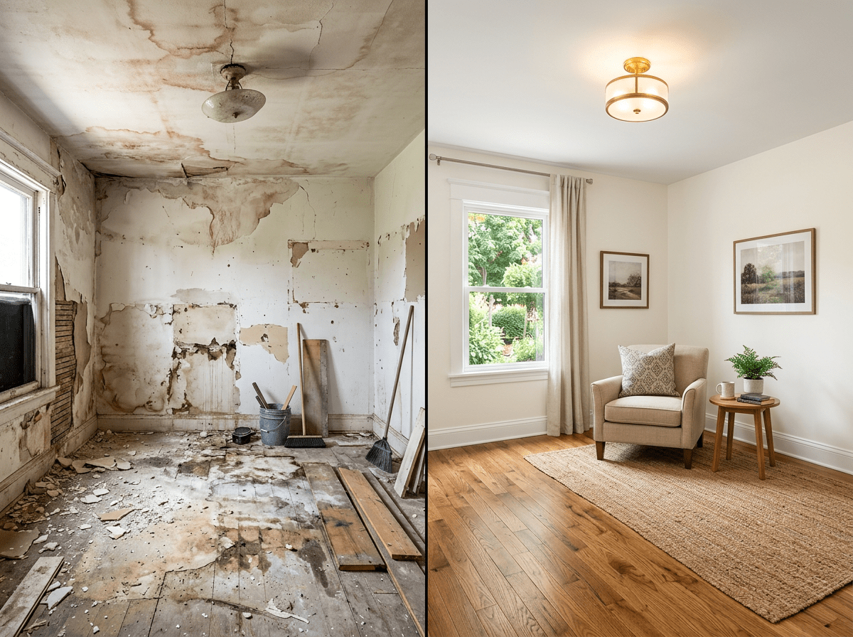 Complete fire damage cleanup, smoke odor elimination, structural decontamination & full interior reconstruction — with a warranty-backed rebuild. We secure your valuables and handle your insurance documentation.